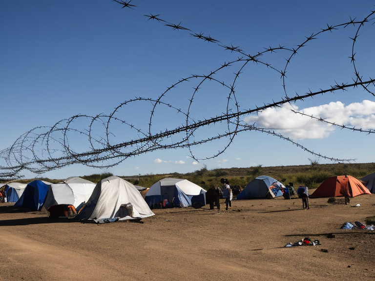 En la frontera entre México y Estados Unidos, se encuentran dos campamentos improvisados separados por una alambrada de púas. Por un lado, cientos de migrantes esperan bajo el sol durante horas o días para solicitar asilo, mientras que al otro lado del Río Bravo, aquellos que huyen del Instituto Nacional de Migración (INM) esperan ser admitidos en Estados Unidos. El primer grupo espera que la Guardia Nacional de Texas abra una puerta en la alambrada para permitirles unirse al segundo campamento y estar más cerca de su objetivo de lograr el "sueño americano". Estos migrantes se encuentran allí para evitar ser detenidos por el INM y ser devueltos a la frontera sur de México. Los que ya están del otro lado de la alambrada esperan ser procesados por la Patrulla Fronteriza. En la fila, sufren hambre y sed, con poca protección contra el calor extremo y las inclemencias del clima. Algunos incluso se ven obligados a beber agua sucia del río debido a la falta de suministros por parte de Estados Unidos. Mientras esperan, los migrantes enfrentan dificultades para obtener agua y alimentos, y algunos optan por abandonar la fila. Además, han denunciado que los militares estadounidenses les devuelven las botellas de agua que les lanzan. A pesar de estas dificultades, los migrantes siguen esperando pacientemente la oportunidad de ingresar a Estados Unidos y buscan que se les juzgue como inmigrantes y no como criminales. La Embajada de Estados Unidos ha difundido un video en el que el comediante Carlos Villagrán, en su personaje de Kiko, aconseja a los migrantes no cruzar la frontera ilegalmente y buscar vías legales para ingresar al país.